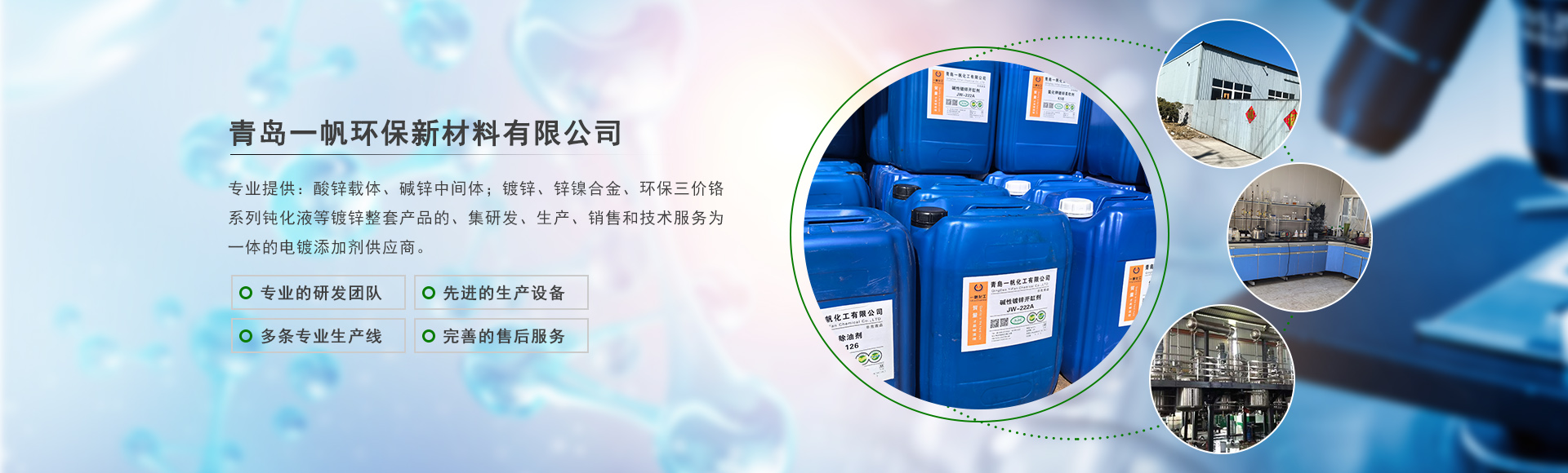 青島一帆環(huán)保新材料有限公司主營(yíng)酸鋅載體、堿鋅中間體等一站式電鍍添加劑服務(wù)商!
